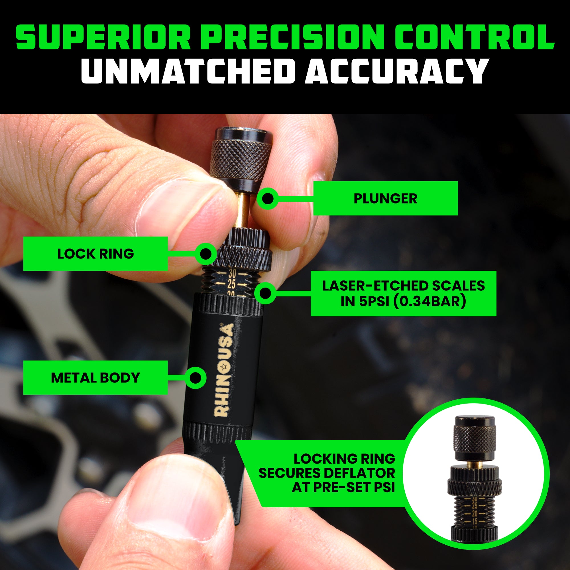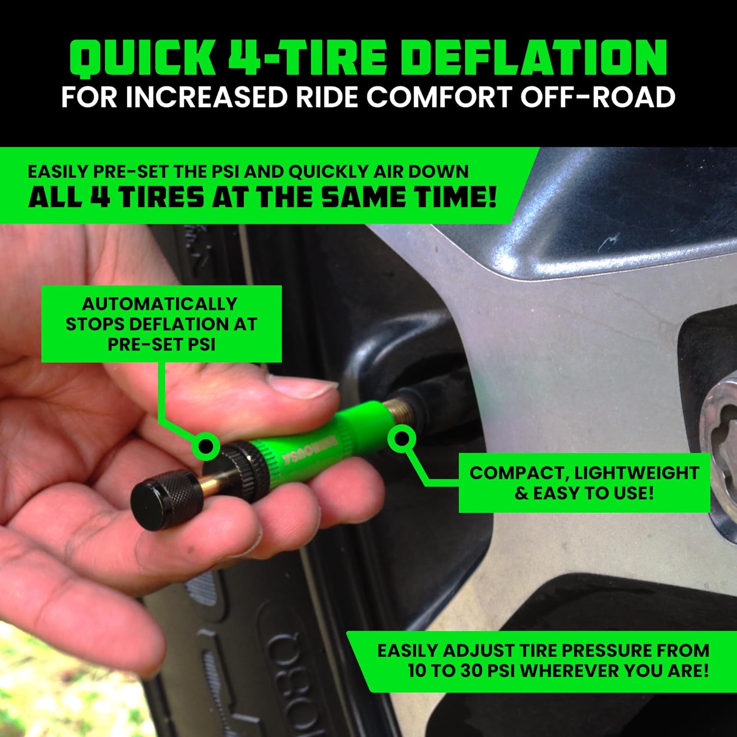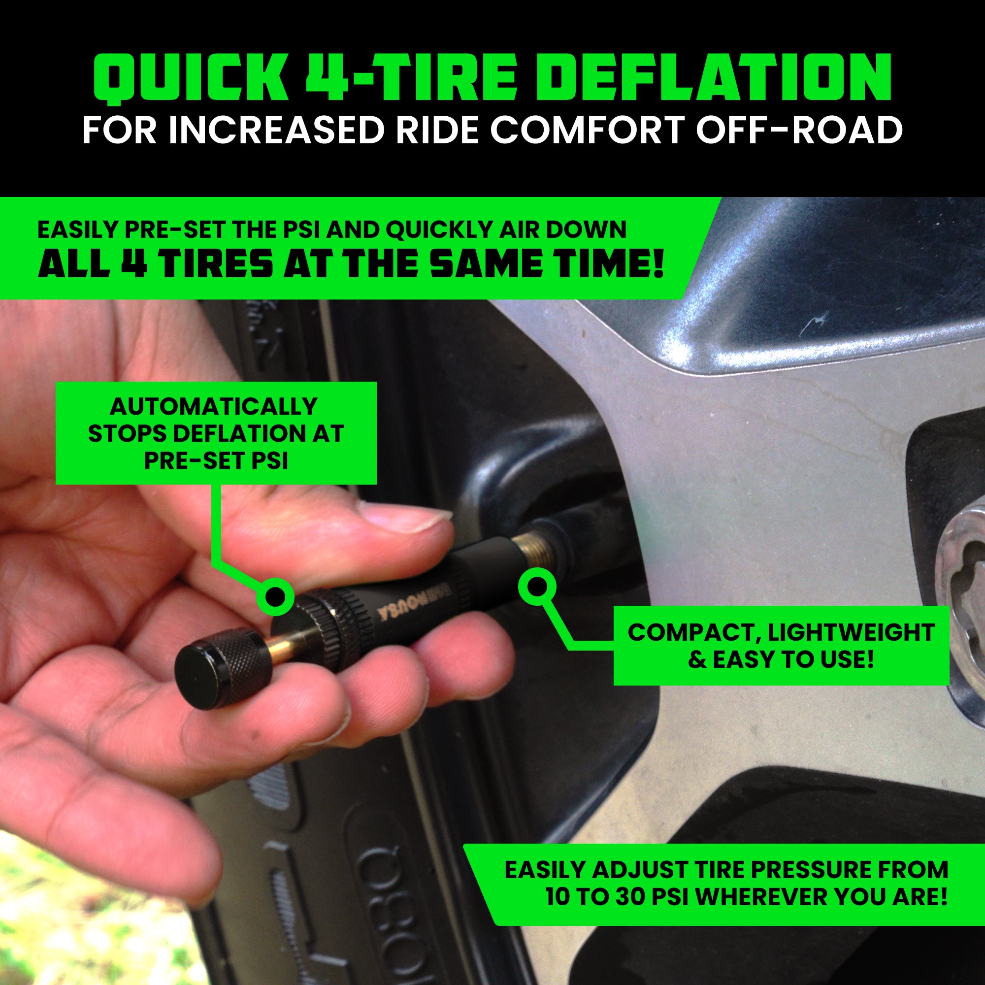 PRECISION ACCURACY - Each Tire Deflator is Individually Calibrated With an Accuracy of +/- 2 PSI, Specifically Designed for Quick Air-Down Setups for Off-Road Conditions.