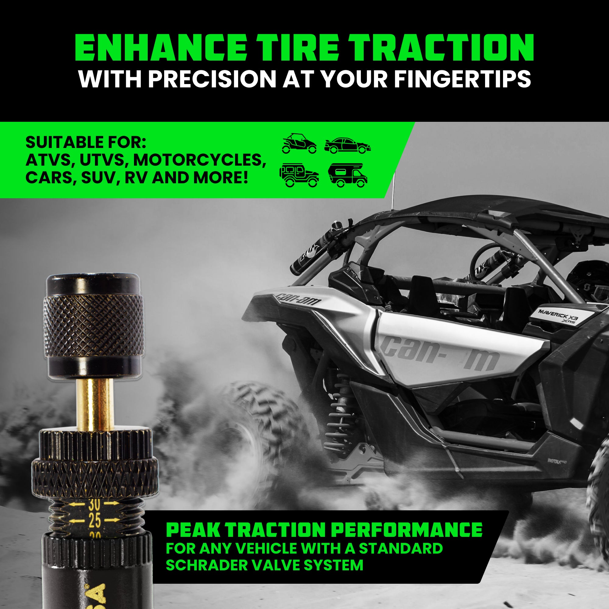 PRESET YOUR DESIRED PSI - Set Your Preferred PSI Anywhere From 10 to 30 for Optimal Performance in Sand, Snow, or Rocky Terrain.