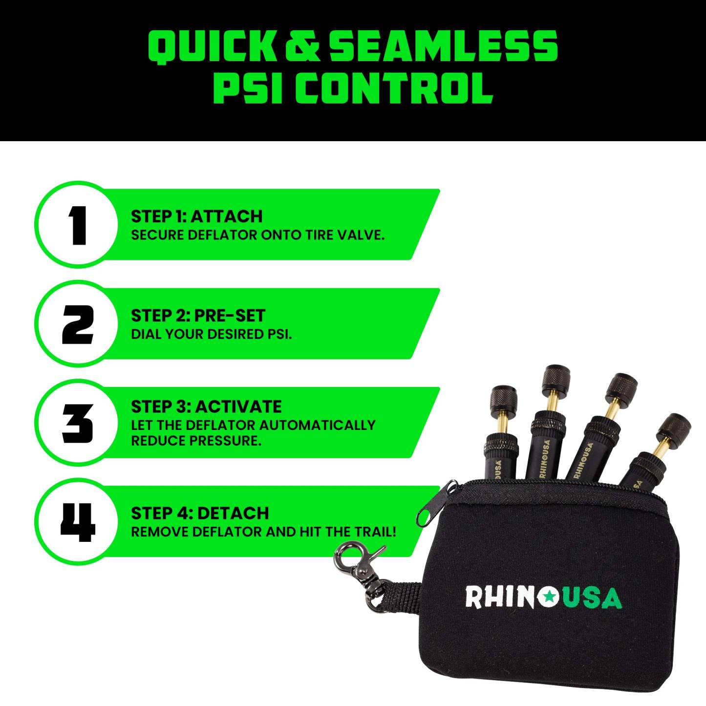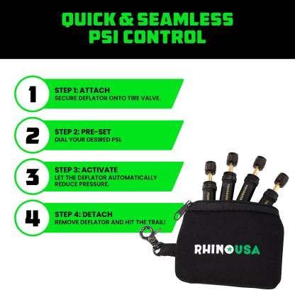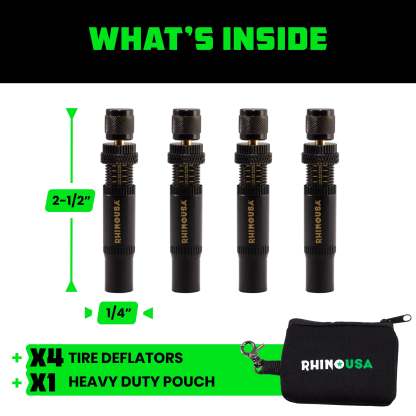 SAVES YOU TIME & BACK PAIN - Attach one deflator to each tire stem, which halts air flow once the set PSI is reached. No Need to Deal With Valve Cores or Monitor Each Tire Individually.