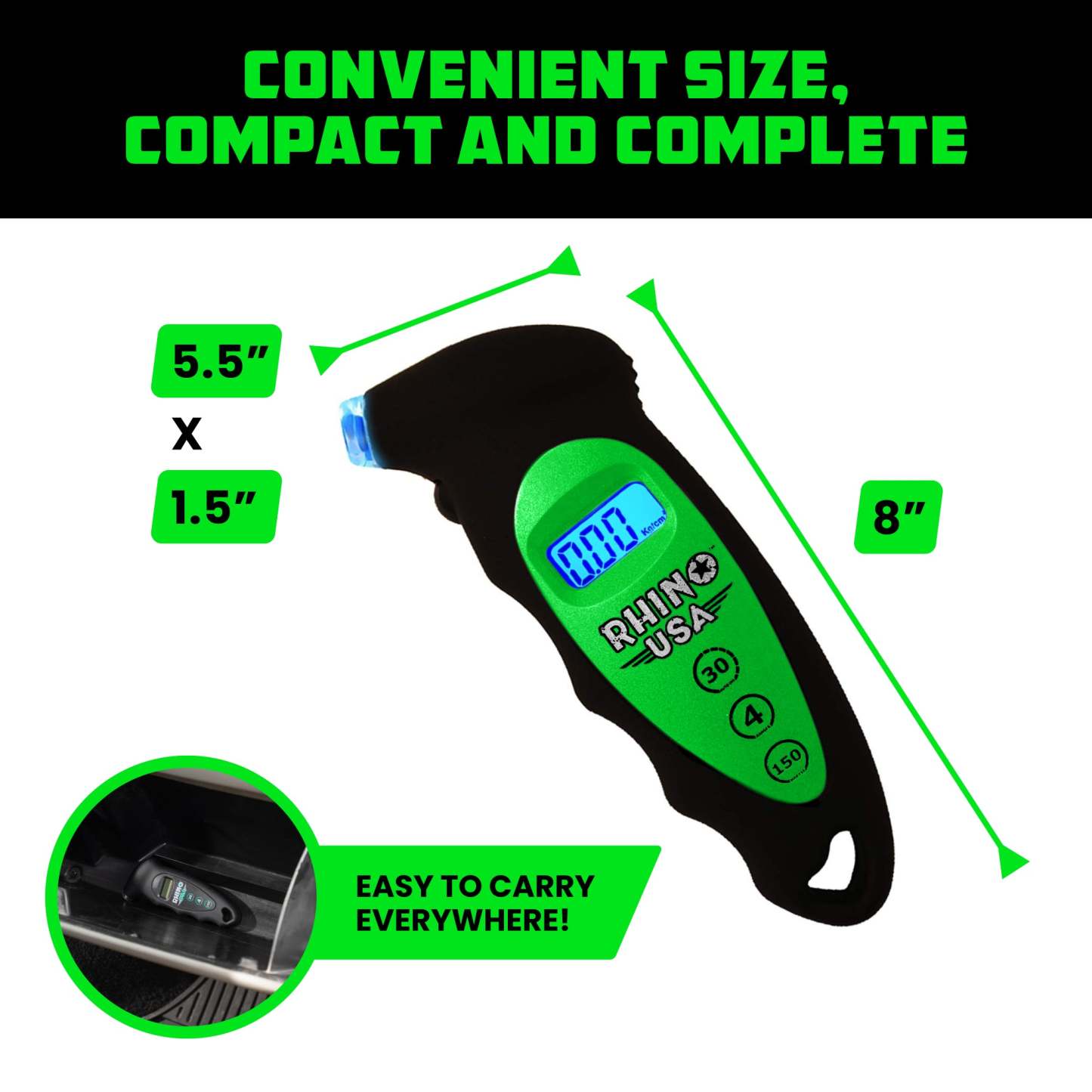 - DIGITAL TIRE PRESSURE GAUGE 150 PSI - 4 Ranges, Ergonomic Design w/Lighted Nozzle & LCD Backlit Display - Certified Accurate Readings, Best Digital Gage