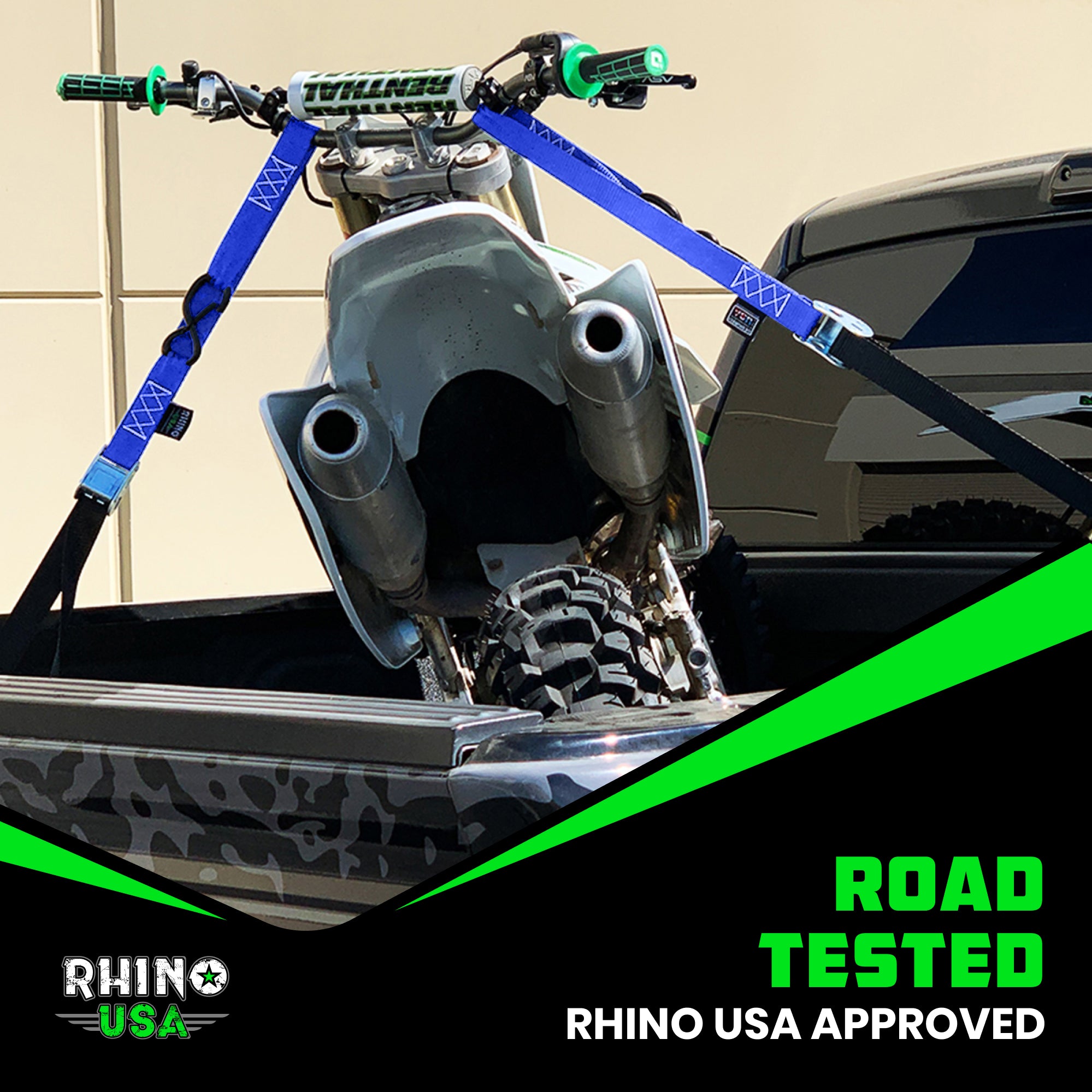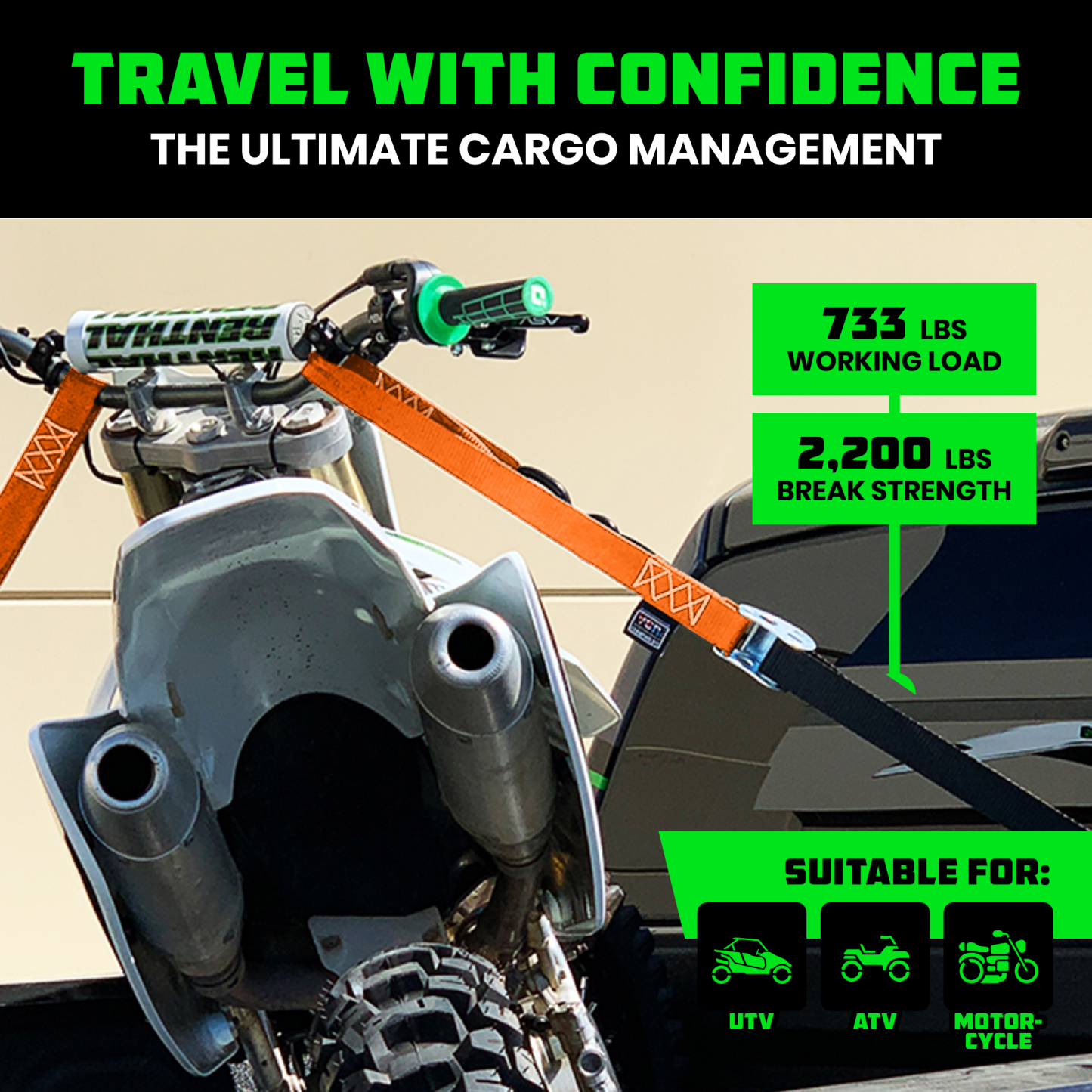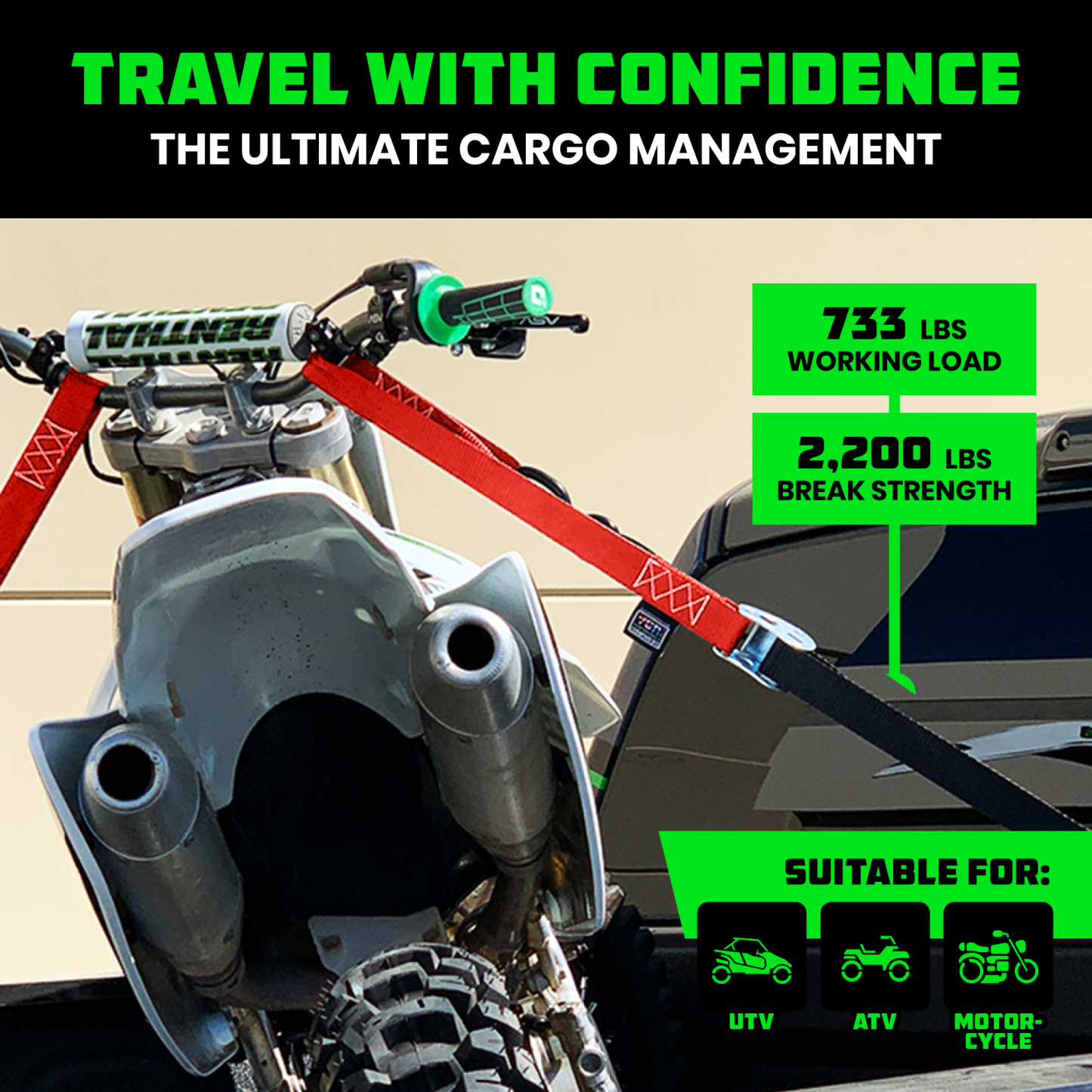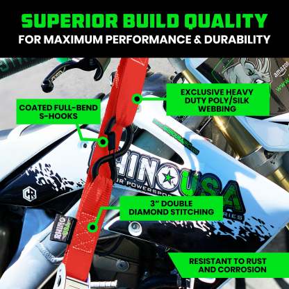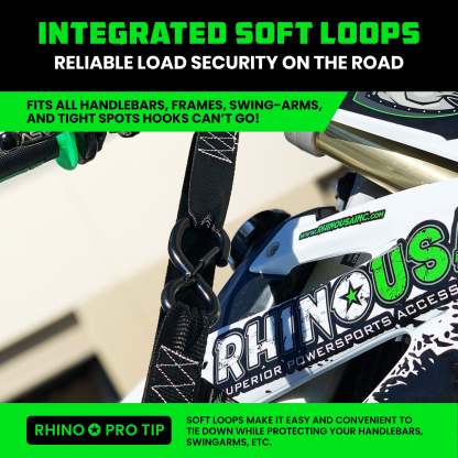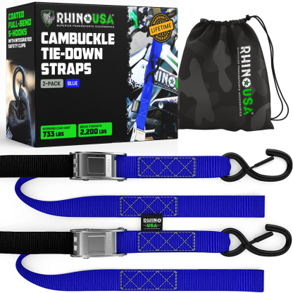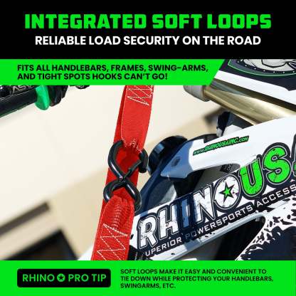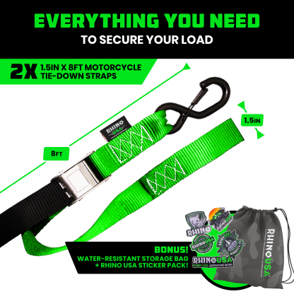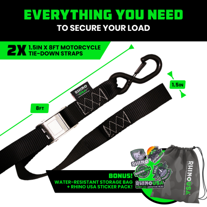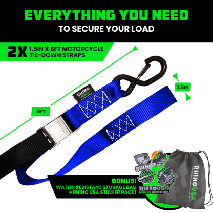- MOTORCYCLE TIE DOWN STRAPS (2 PACK) - Lab Tested 3,328lb Break Strength, Steel Cambuckle Tiedown Set with Integrated Soft Loops - Better Than a Ratchet Strap