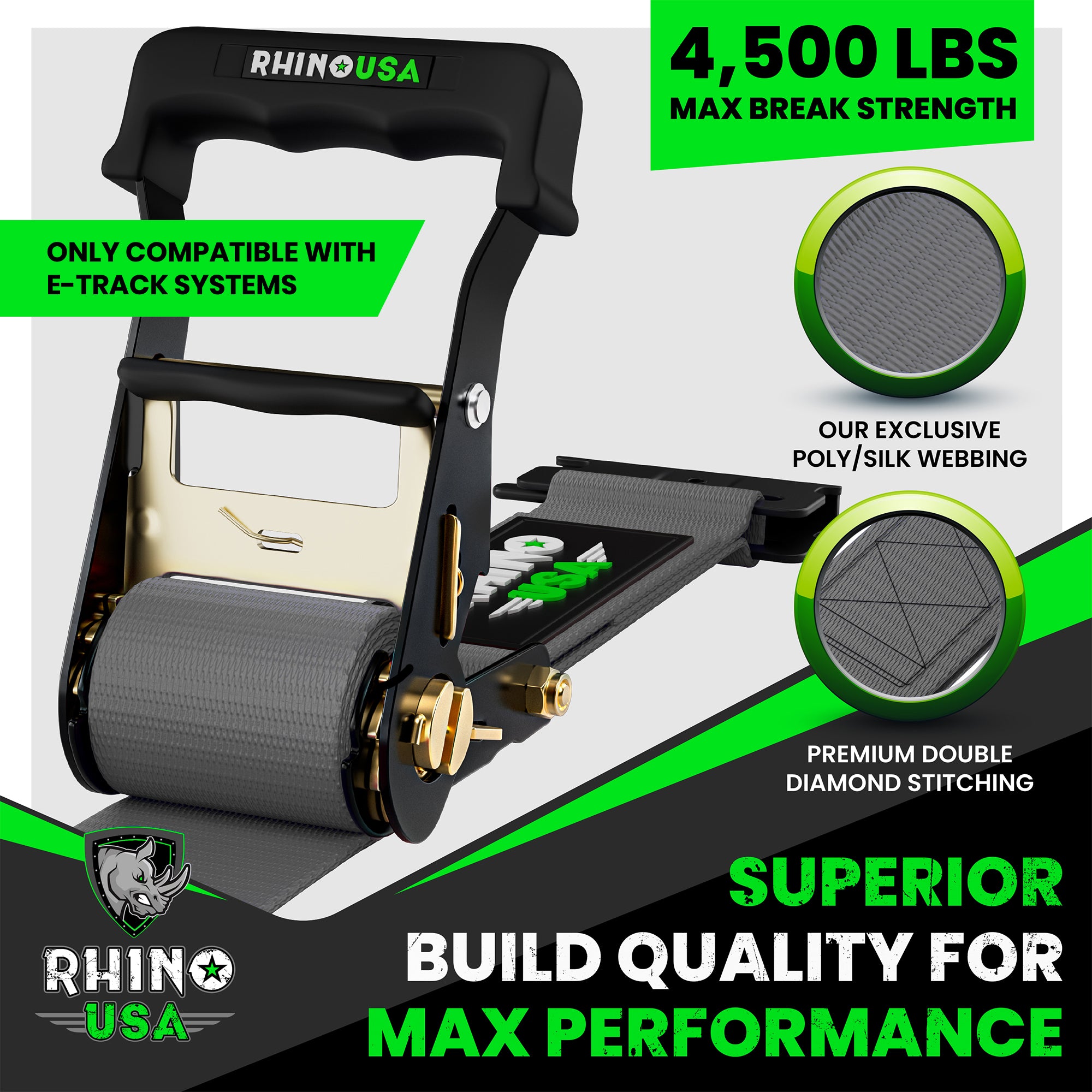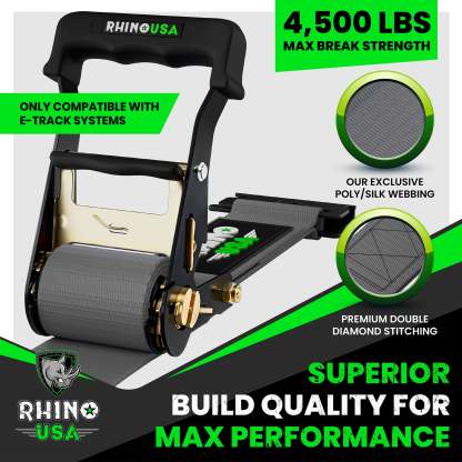 - UNMATCHED BUILD QUALITY - Corrosion Resistant Anodized Ratchet, Ergonomic Padded Handles & Double Stud Automatic Locking Spring E-Track Fittings.