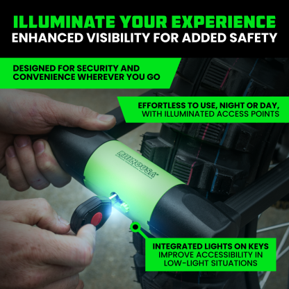 - PROVEN ANTI-THEFT - Built to Withstand Extreme Force, the Rhino USA Bike Lock is Resistant to Cutting, Sawing, Smashing, and Drilling, Withstanding up to 12 Tons of Pressure. This Ensures Maximum Security and Protection Against the Most Determined Thieves.
