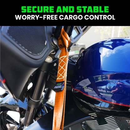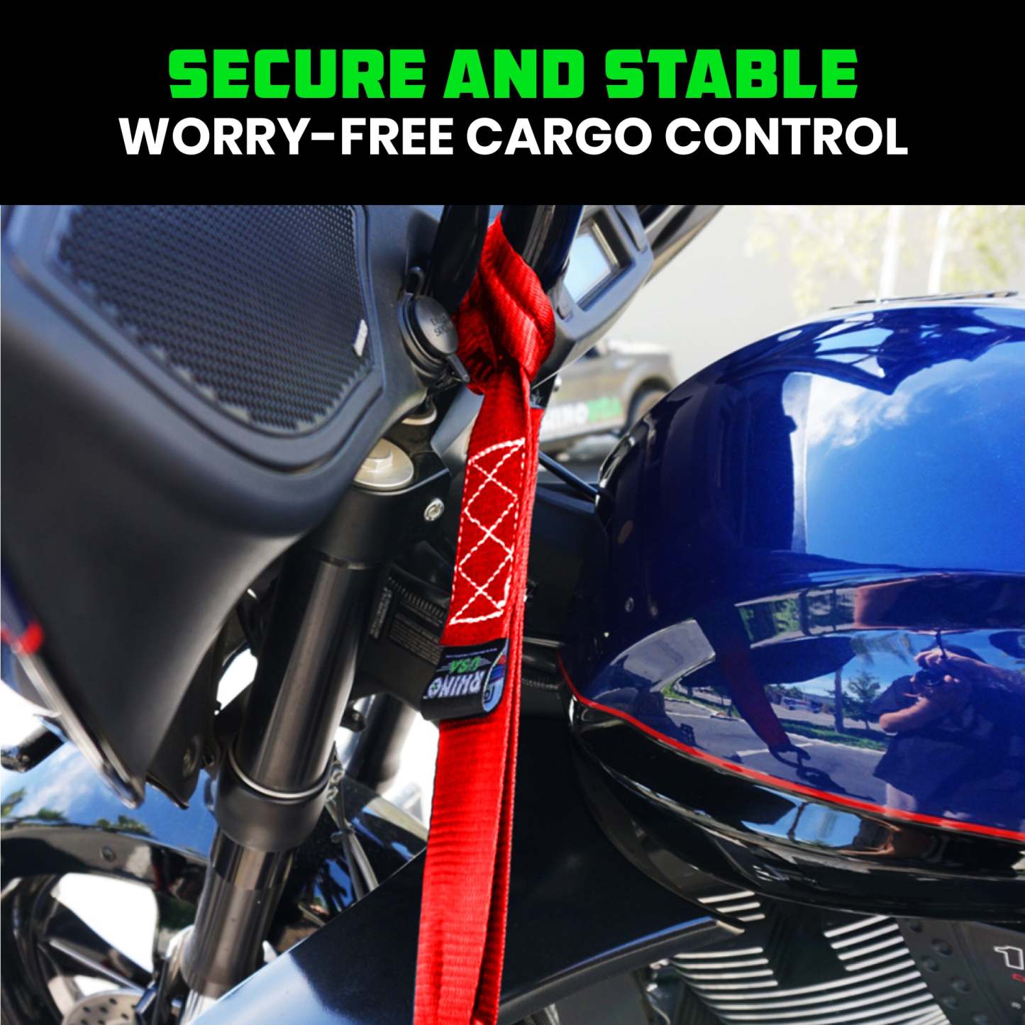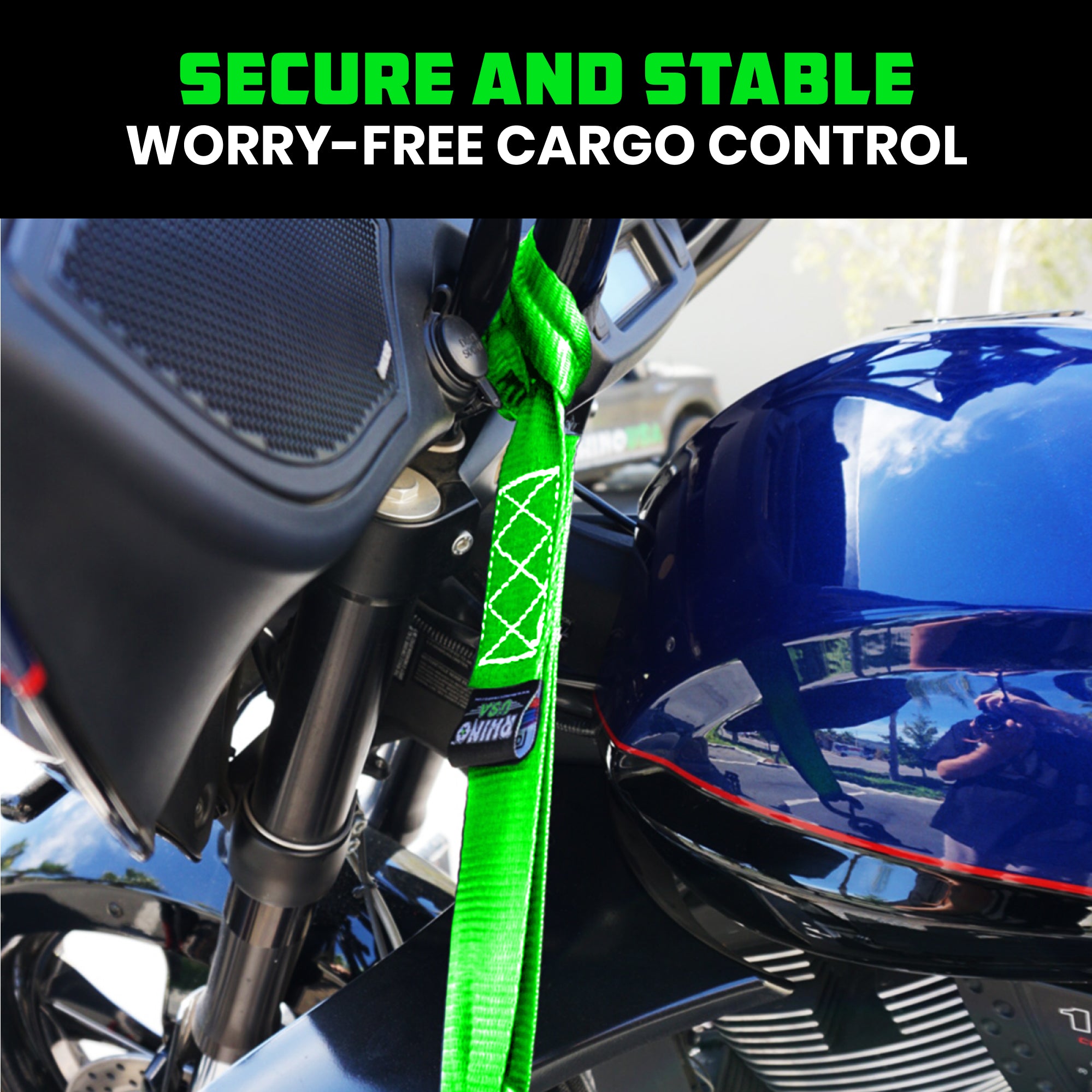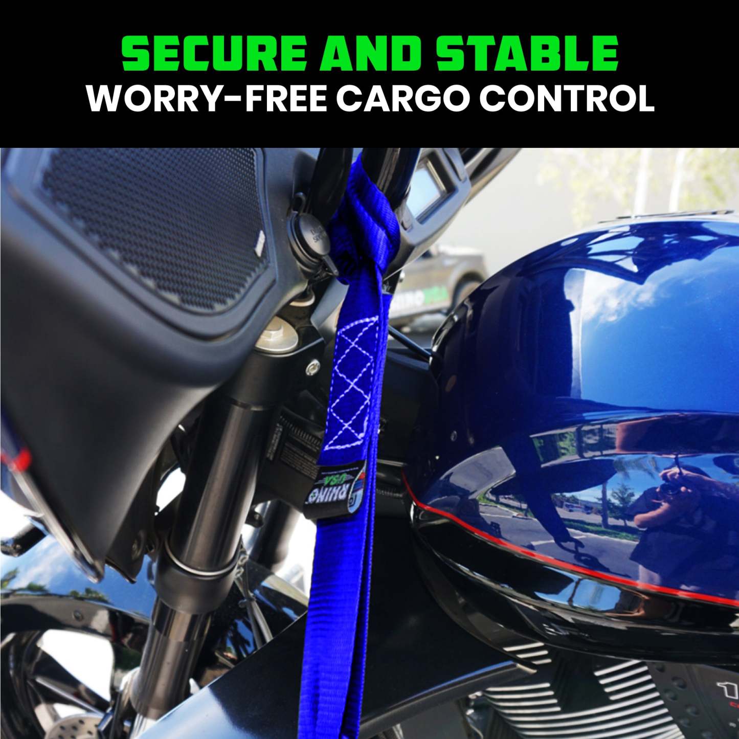 - SOFT LOOPS MOTORCYCLE TIE DOWN STRAPS (4PK) - 10,427lb Max Break Strength 1.6” x 17” Heavy Duty Tie Downs for use with Ratchet Strap - Secure Trailering of Motorcycles, dirt bikes, Kayak, Jeep, ATV, UTV