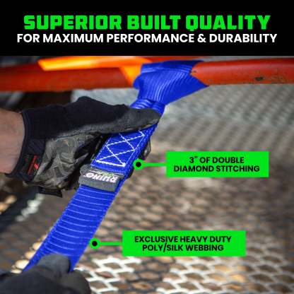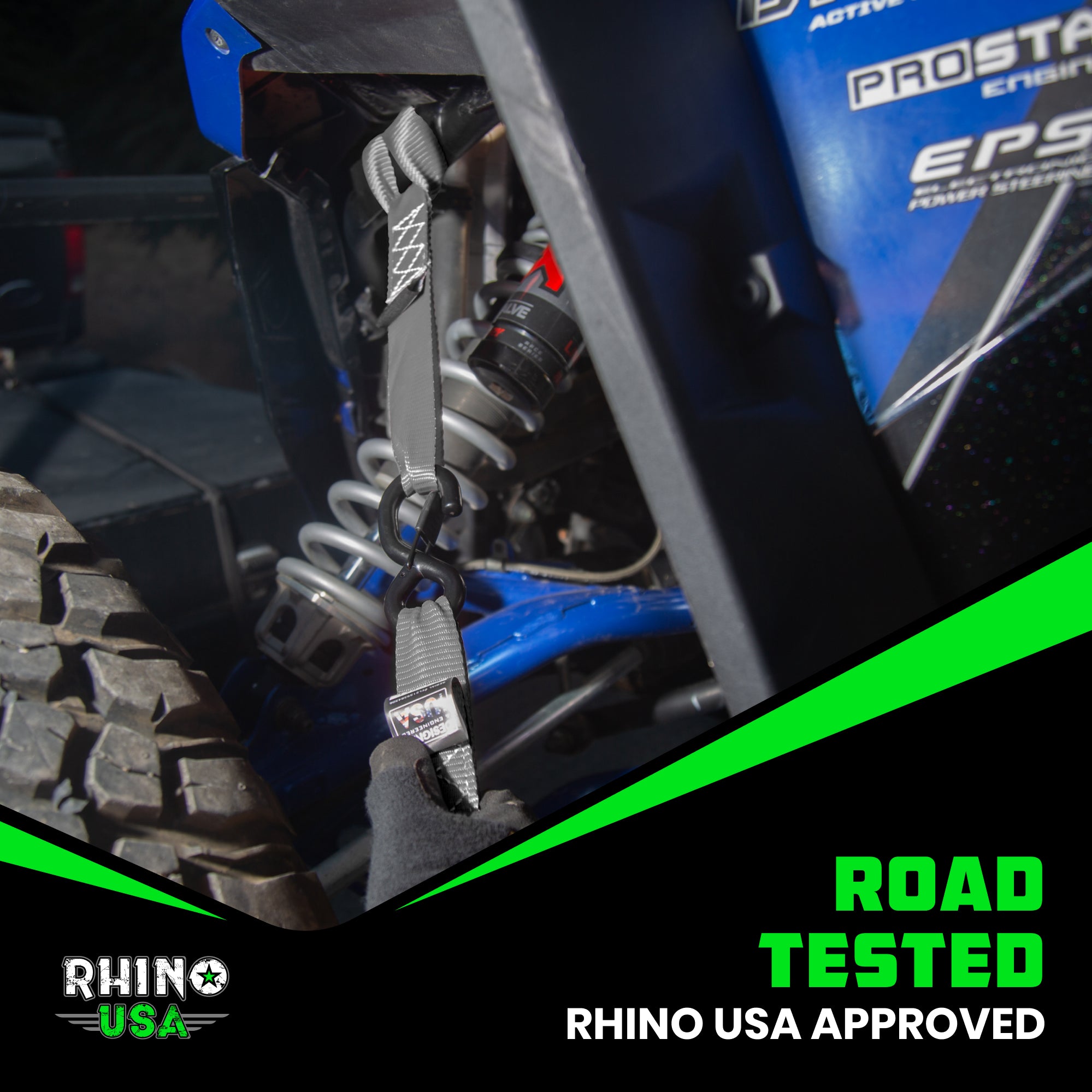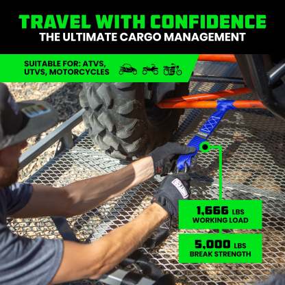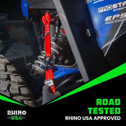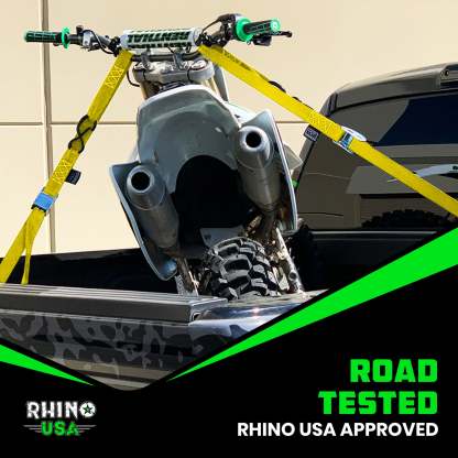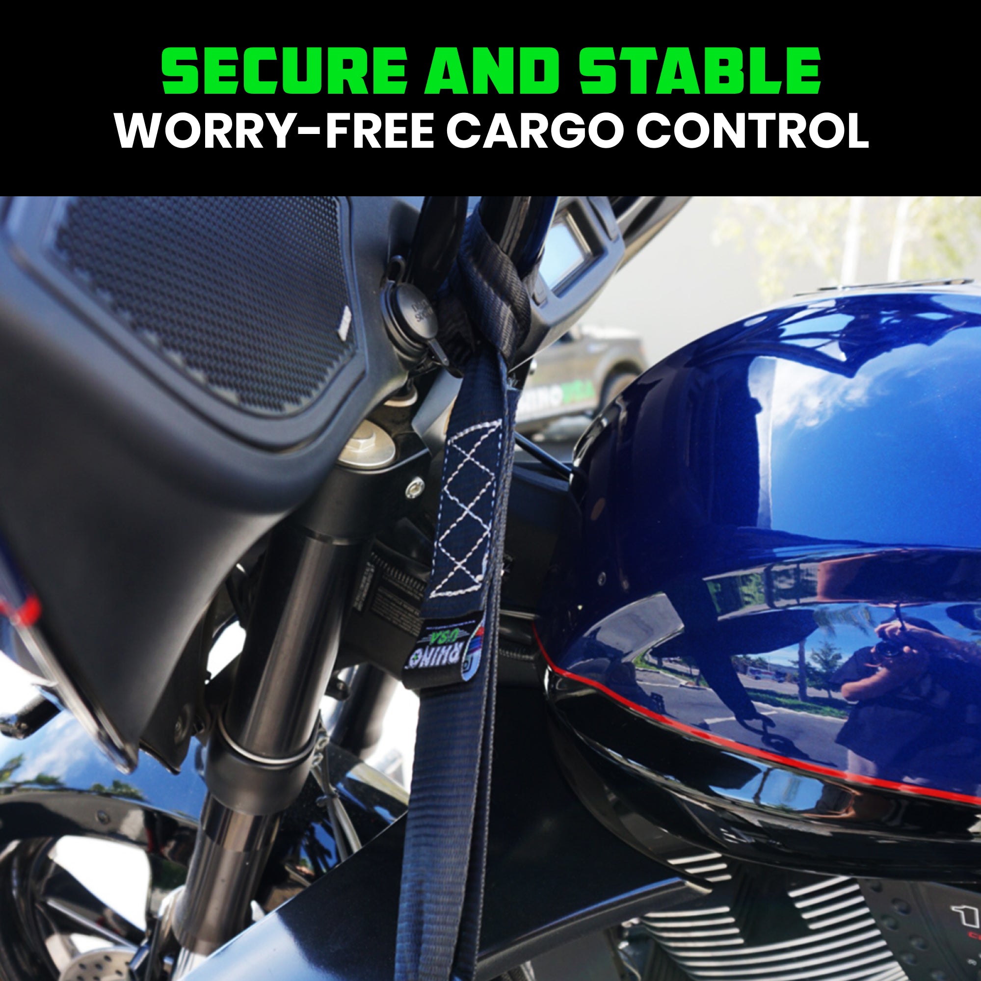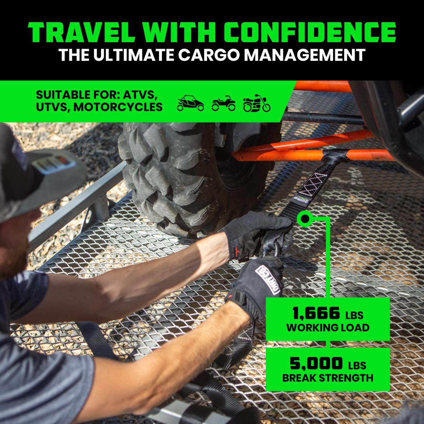 - SOFT LOOPS MOTORCYCLE TIE DOWN STRAPS (4PK) - 10,427lb Max Break Strength 1.6” x 17” Heavy Duty Tie Downs for use with Ratchet Strap - Secure Trailering of Motorcycles, dirt bikes, Kayak, Jeep, ATV, UTV