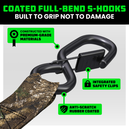SUPERIOR QUALITY MATERIALS - Anodized Ratchet, Ergonomic Padded Handle & Coated Full Bend S Hooks